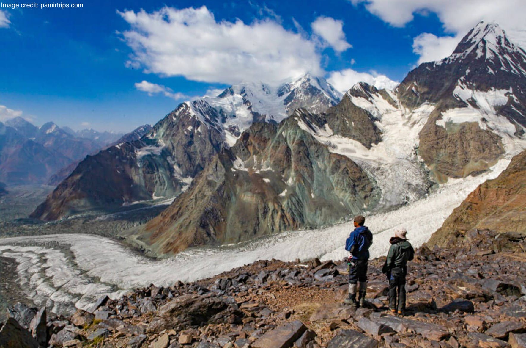 This officially was renamed in 2023, though most writing that discusses this still uses the former name - that of a Russian explorer who came across this formation in 1878. About 45 miles long and some 350 square miles in area, it is the longest glacier in the world outside of the polar regions, with its meltwater eventually feeding the Amu Darya. What is this glacier (shown) found in the Pamir Mountains?