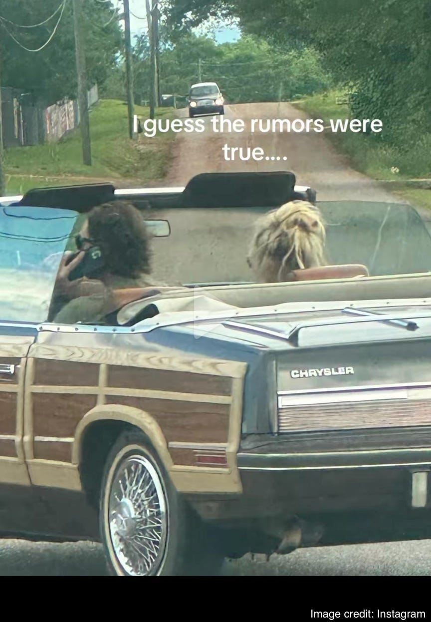 Last year, an Instagram user posted a photo of musicians Riley Green and Megan Moroney driving around in a custom-made Chrysler. A work of art strikingly similar to that photograph is used for the cover of the single for what recent hit song? The photo below was taken in Jacksonville, Alabama, while that artwork adds a sign to indicate that the scene has been relocated to Amarillo, with the lyrics of the song suggesting that life in Tennessee would have been the other option.