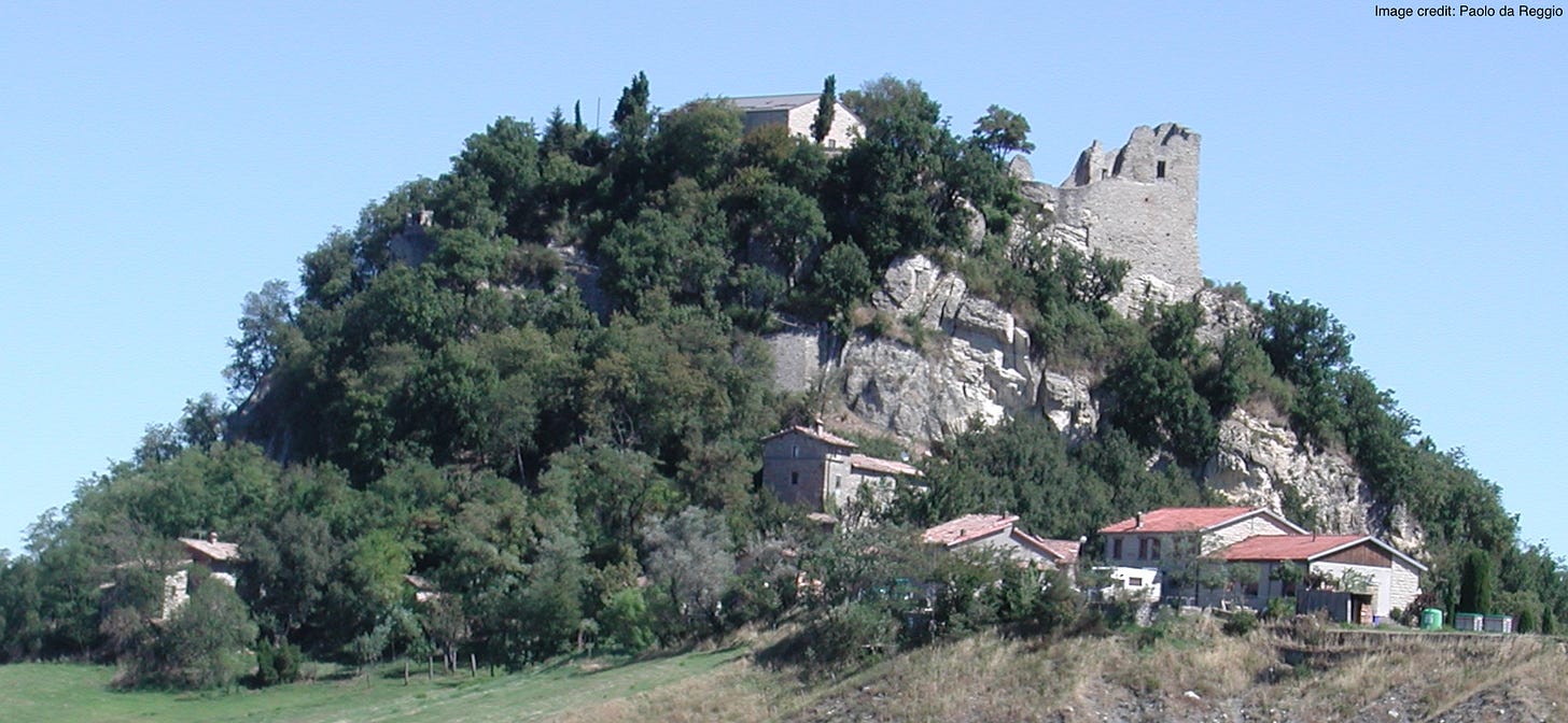 Shown are the remains of the castle located in what comune of Reggio Emilia, Italy? The castle was built in AD 940 by Adalbert Atto, a Lombard, and it mostly was destroyed over 300 years later during a local revolt, but in between it served as an important stronghold in northern Italy. The most famous person to rule from the castle likely was Matilda, the “Great Countess,” who helped set in motion actions that later were referenced in a notable quotation said during a different controversy, one that involved, among other laws, the 1871 “Pulpit Paragraph” and the 1872 Jesuit Law.