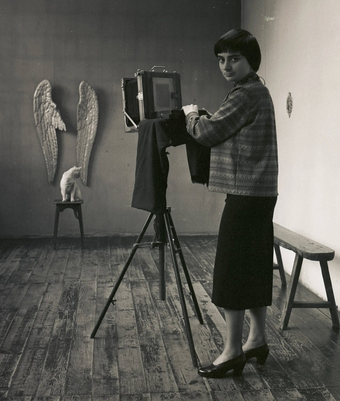 Shown are some of the early works of what person, then practicing as a photographer? Beginning in 1950, she used an old storefront on Rue Daguerre as a place to develop and house her work. Indeed, a later work, in another genre, called Daguerréotypes, was created at the same location, as she was caring for her two-year-old child at the time, and could not travel far from home.