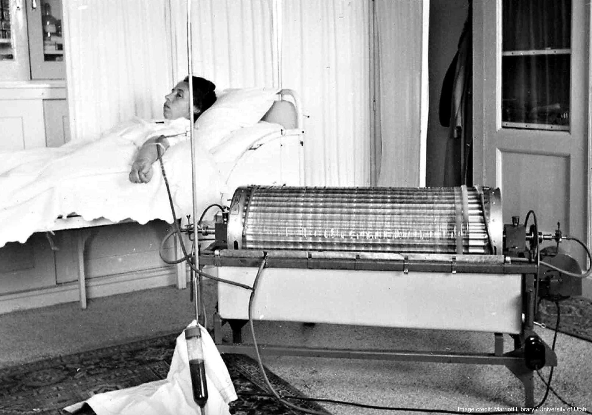 It was put together without the occupying Nazis knowing about it, which meant that its inventor had to make do with what he had on hand. This included a water pump taken from a Ford Model T, orange juice cans, and membranes for filtration made out of sausage casings. The nurse shown below served as a model to demonstrate the finished product. Which physician developed the “rotating drum kidney” - the first successful dialysis machine - in 1943?
