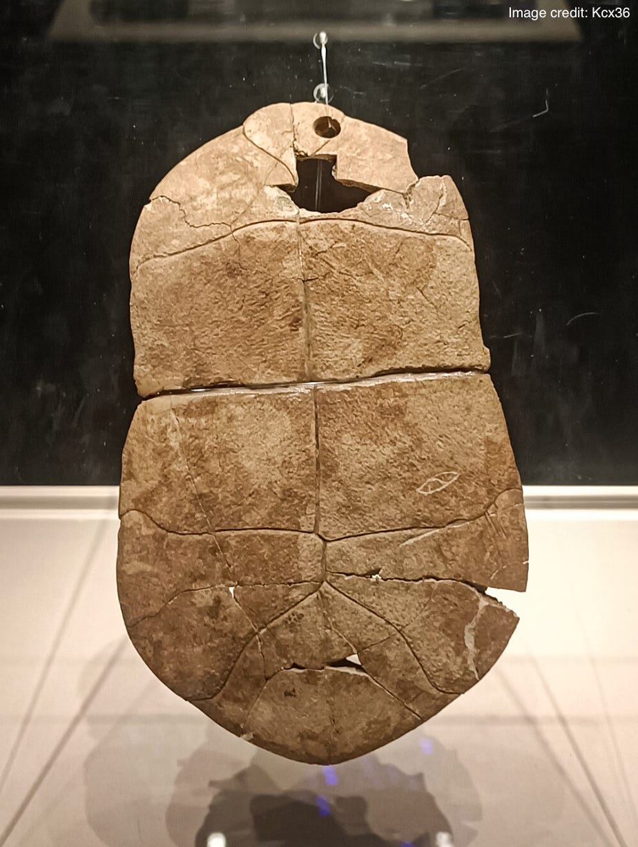 Last time I mentioned a candidate for the oldest cryptogram, and that got me thinking about what could be the oldest undeciphered language. Unfortunately, there is not an easy answer. One complicating factor is that some pictorial depictions may be just that - or they could be a script meant to convey consistent meaning that was coupled with specific units of sound. The earliest potential candidate for such a script is found on a group of artifacts, including bones and tortoise shells (see below - as you can see, not much to work with there), found at a site located near the Yellow River in Henan, China. This site probably was first settled around 7000 BC before being abandoned around 5700 BC. What is the name of this site? It is the location of the most robust example of artifacts belonging to what is called the Peiligang culture, and among its other findings are a collection of flutes which are thought to be among the oldest musical instruments thus far found by archaeologists.